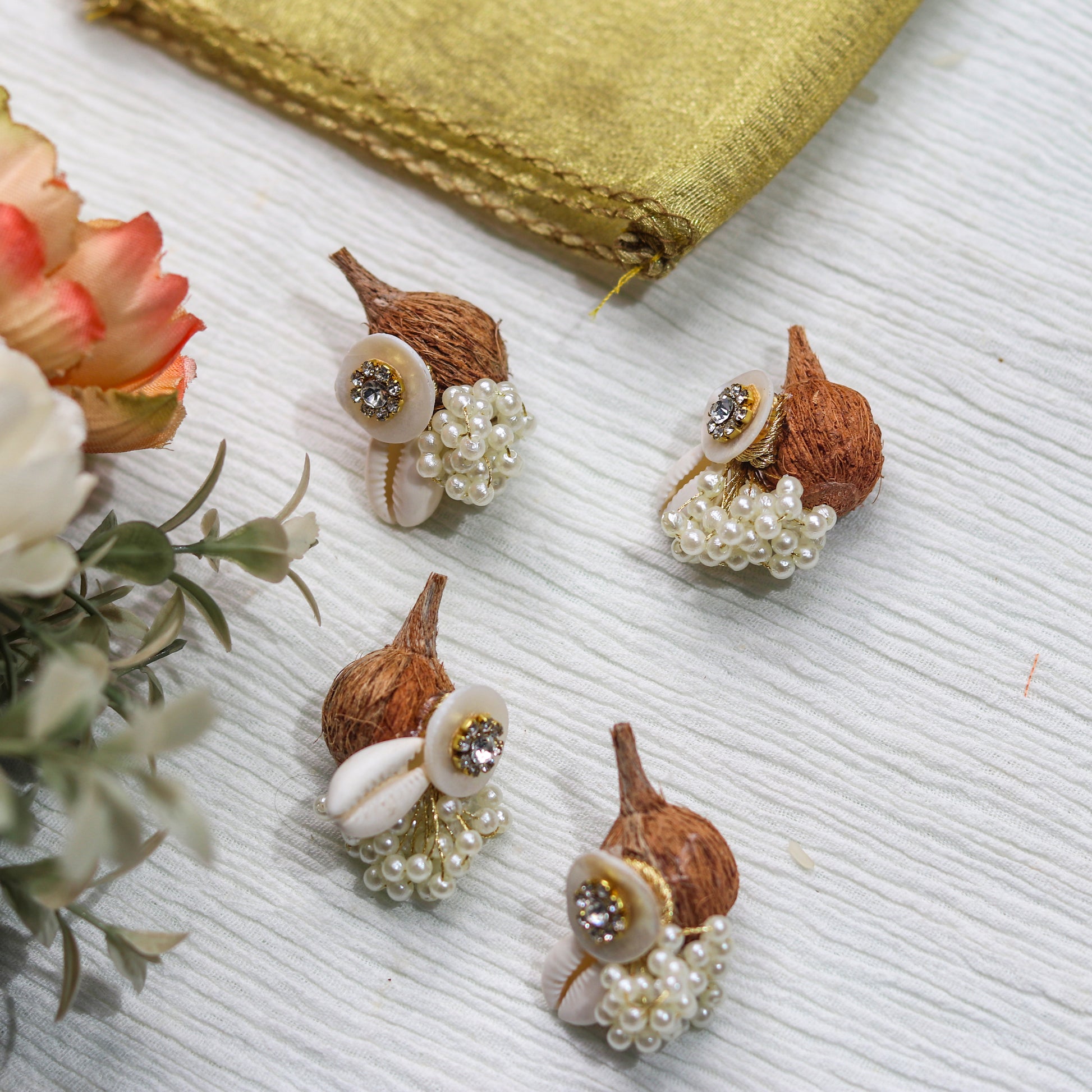 - Nariyal adorned with exquisite Mother of Pearl embellishments, a delightful shagun coconut.