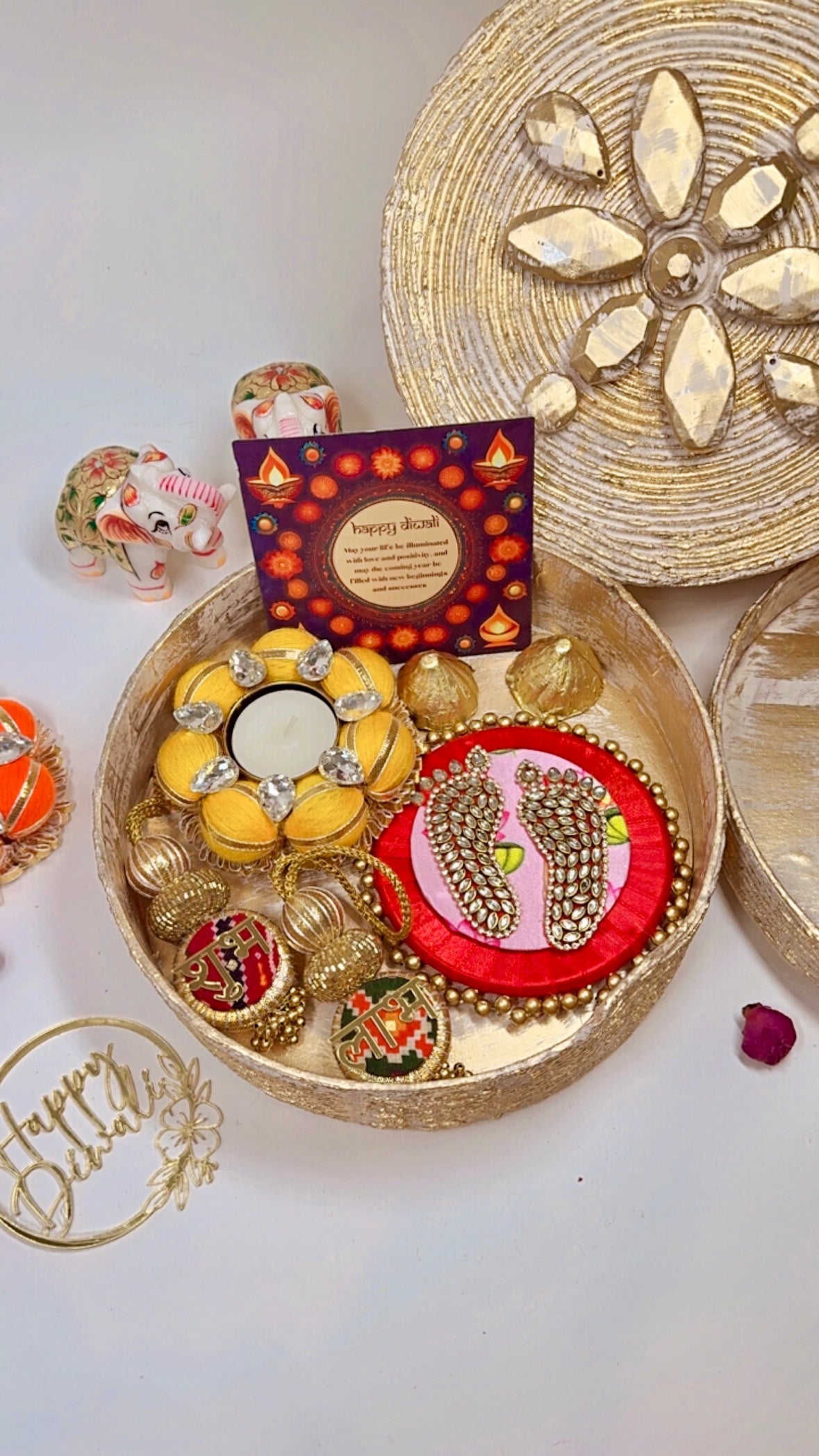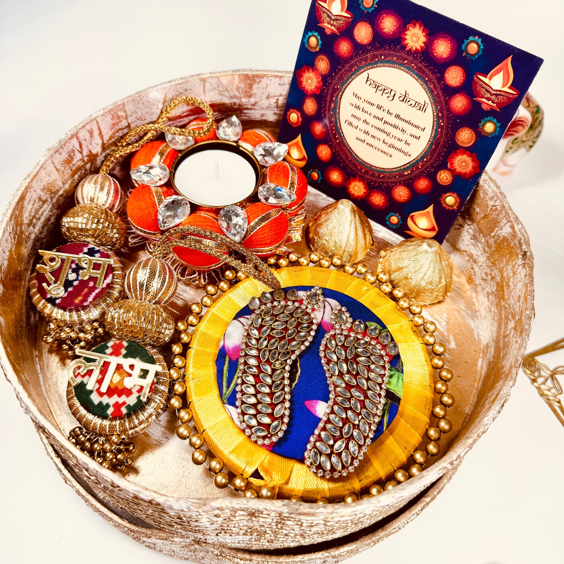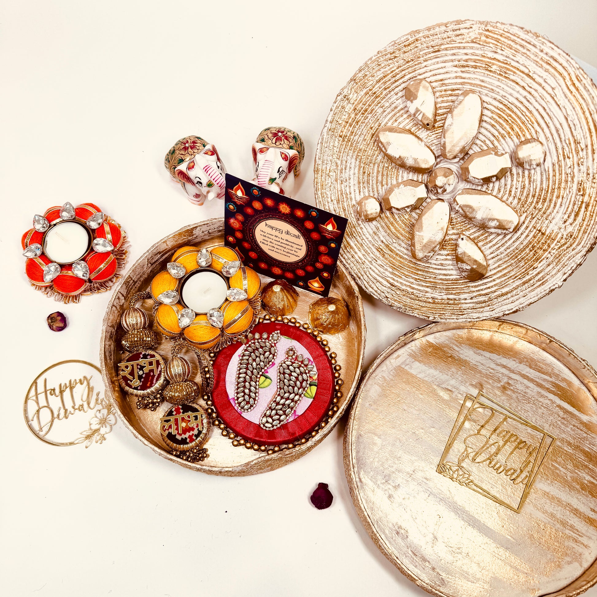 The tealight holder will arrive in a surprise color, chosen from the options shown to keep the excitement alive. Thoughtfully curated, the Celestial Diwali Gift Box is designed to enhance your Diwali celebrations while offering a timeless keepsake to treasure for years to come.