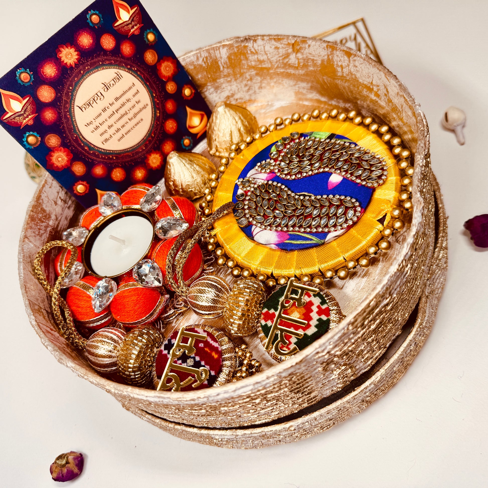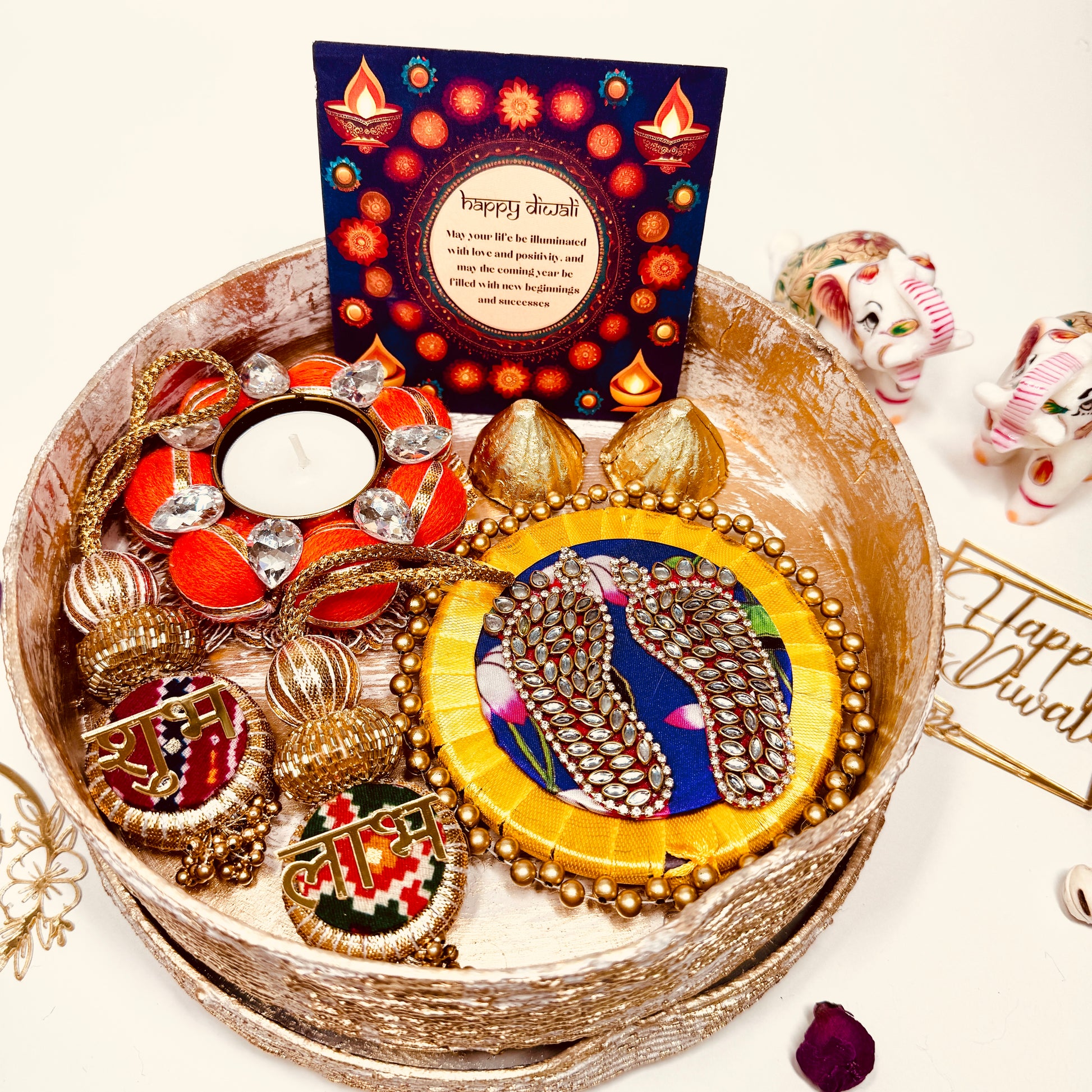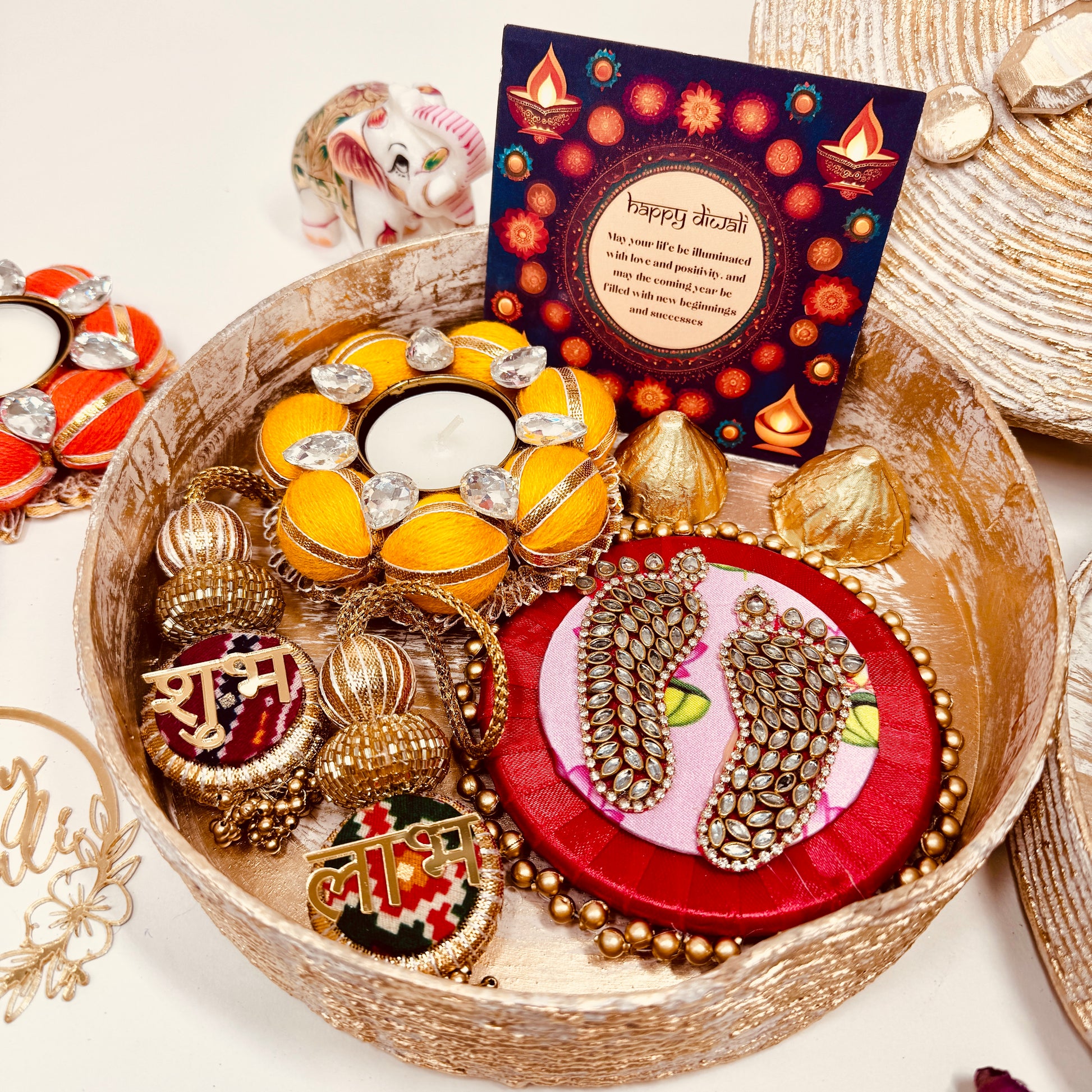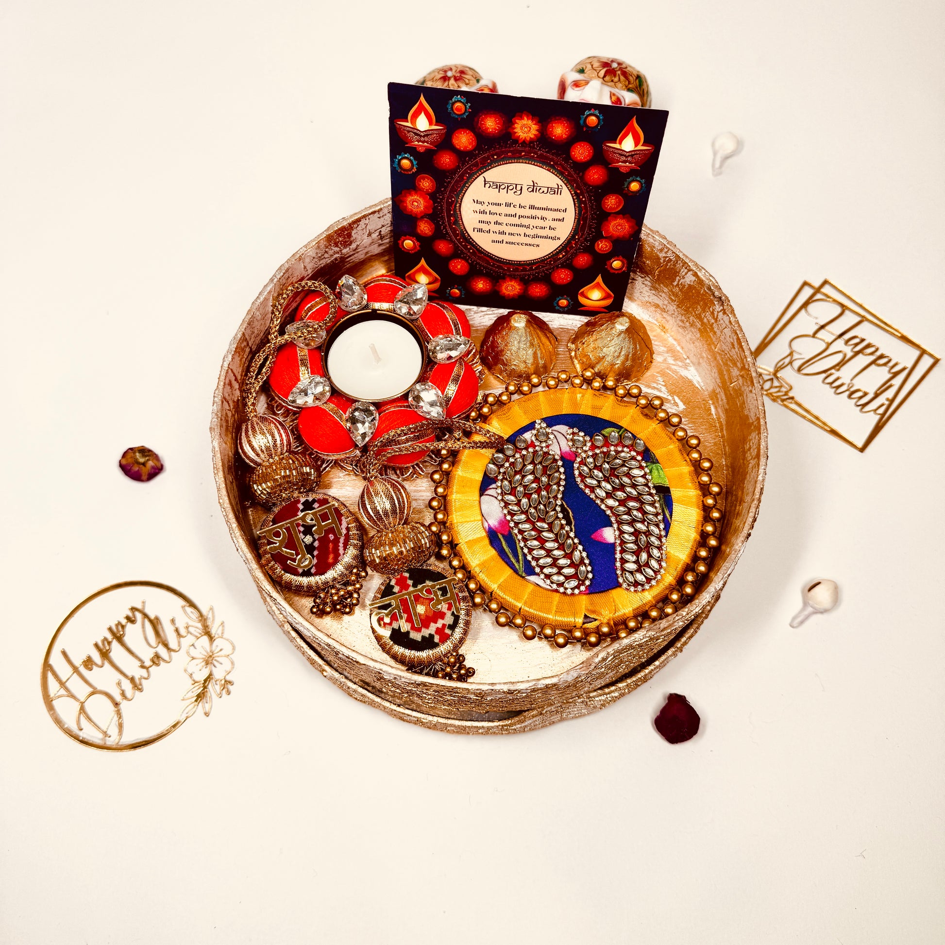 The tealight holder will arrive in a surprise color, chosen from the options shown to keep the excitement alive. Thoughtfully curated, the Celestial Diwali Gift Box is designed to enhance your Diwali celebrations while offering a timeless keepsake to treasure for years to come.