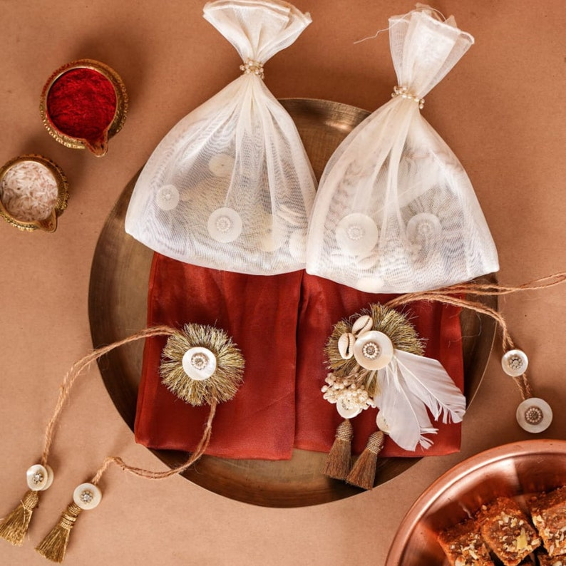 Step into the diverse world of our Bohemian Collection this Raksha Bandhan, where every detail is a celebration of artistry and style. πβ¨ Explore our Feather Touch Boho Rakhi for brother and sister-in-law. This unique Rakhi comes in a beautiful organza potli, adding a touch of elegance to your festive gifting. ππ