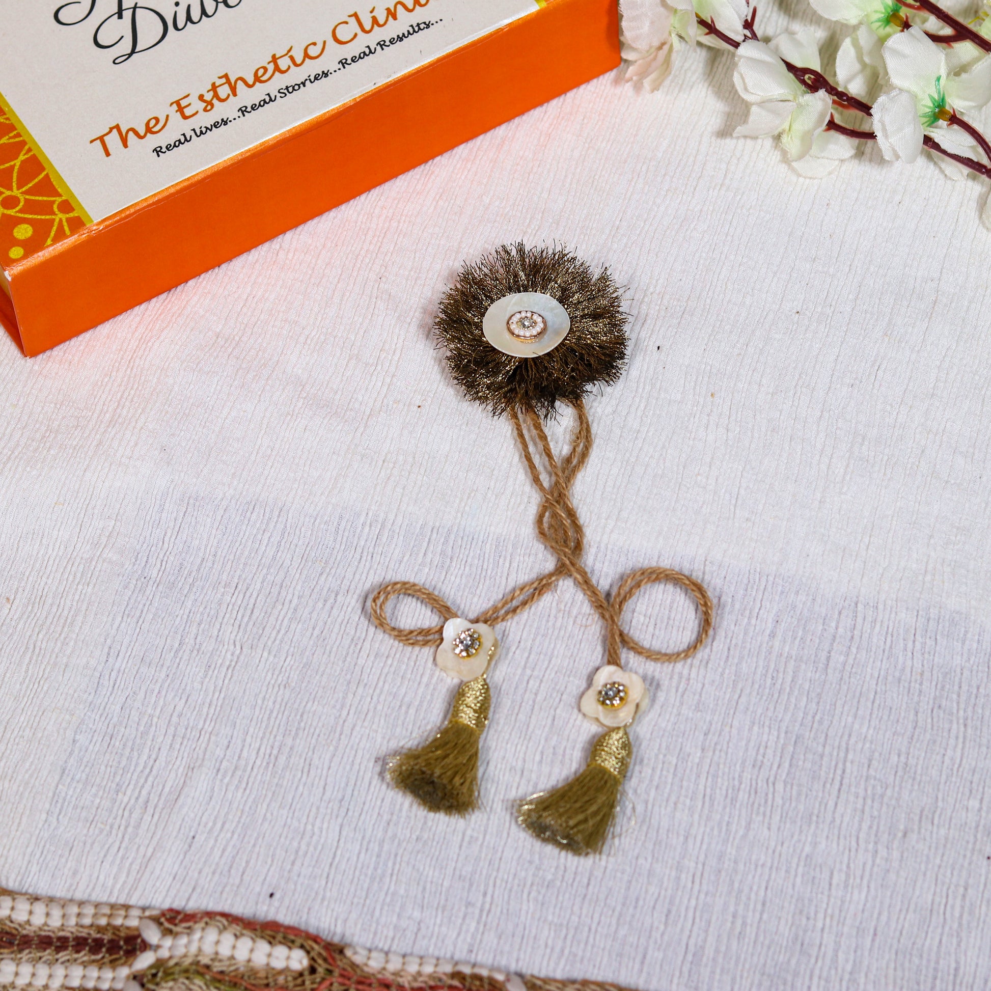 - Feather Touch Rakhi set elegantly presented in a Potli for Bhai Bhabhi.