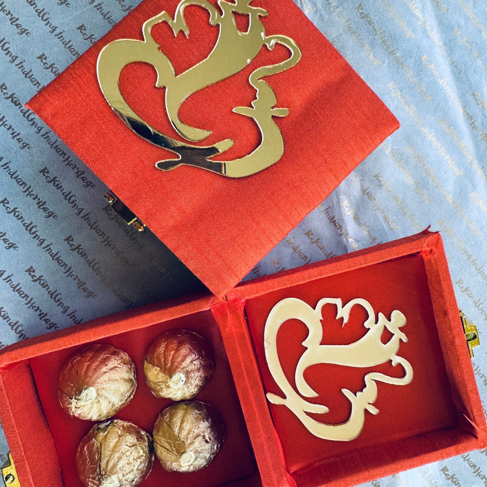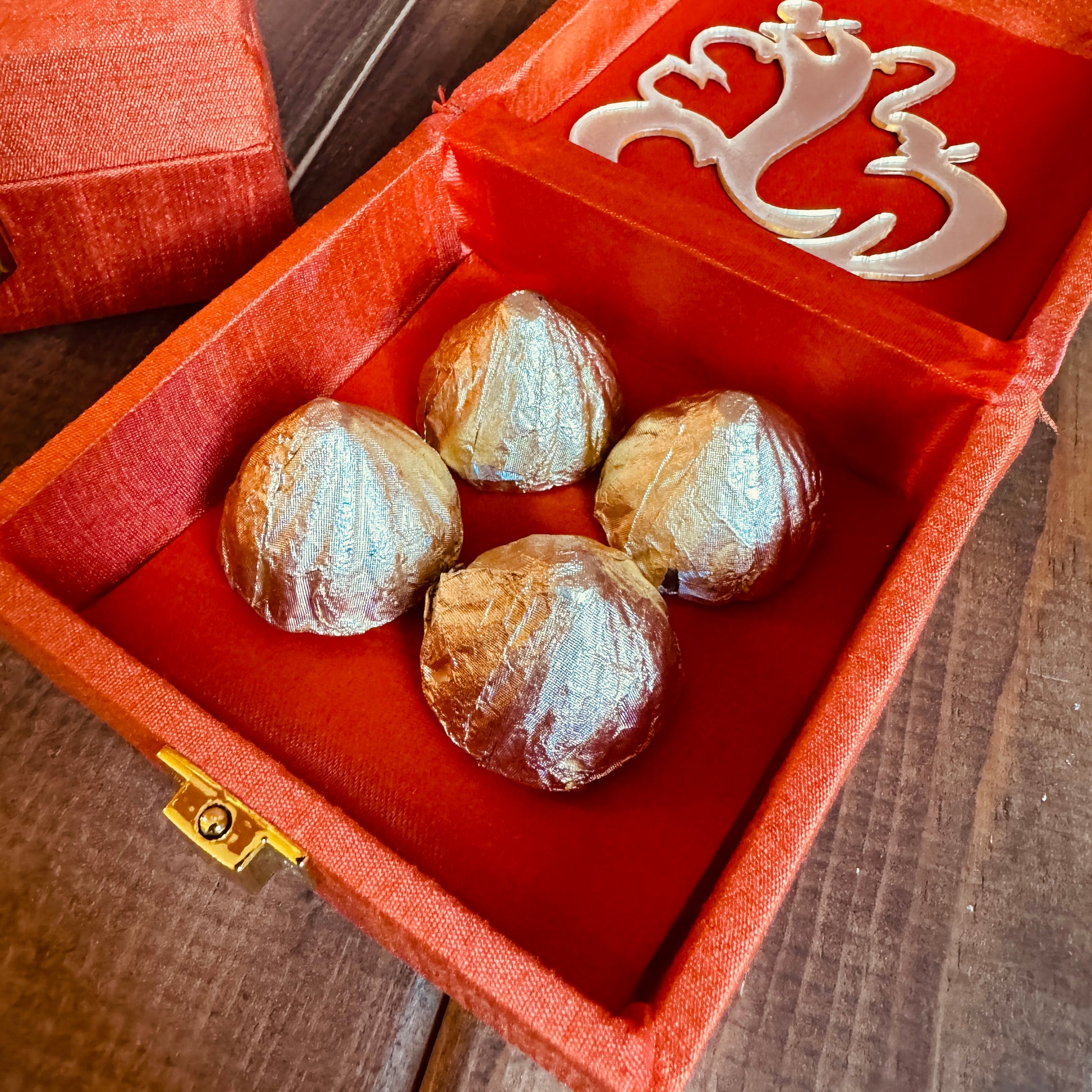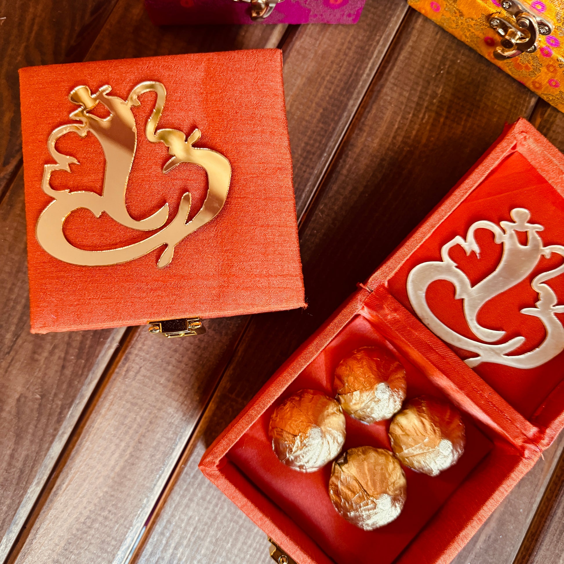 Perfect for gifting during Ganesha festivities, these silk boxes add a luxurious touch to your celebrations. Make your Ganesha return gifts truly special with these delicious and beautifully presented chocolates!