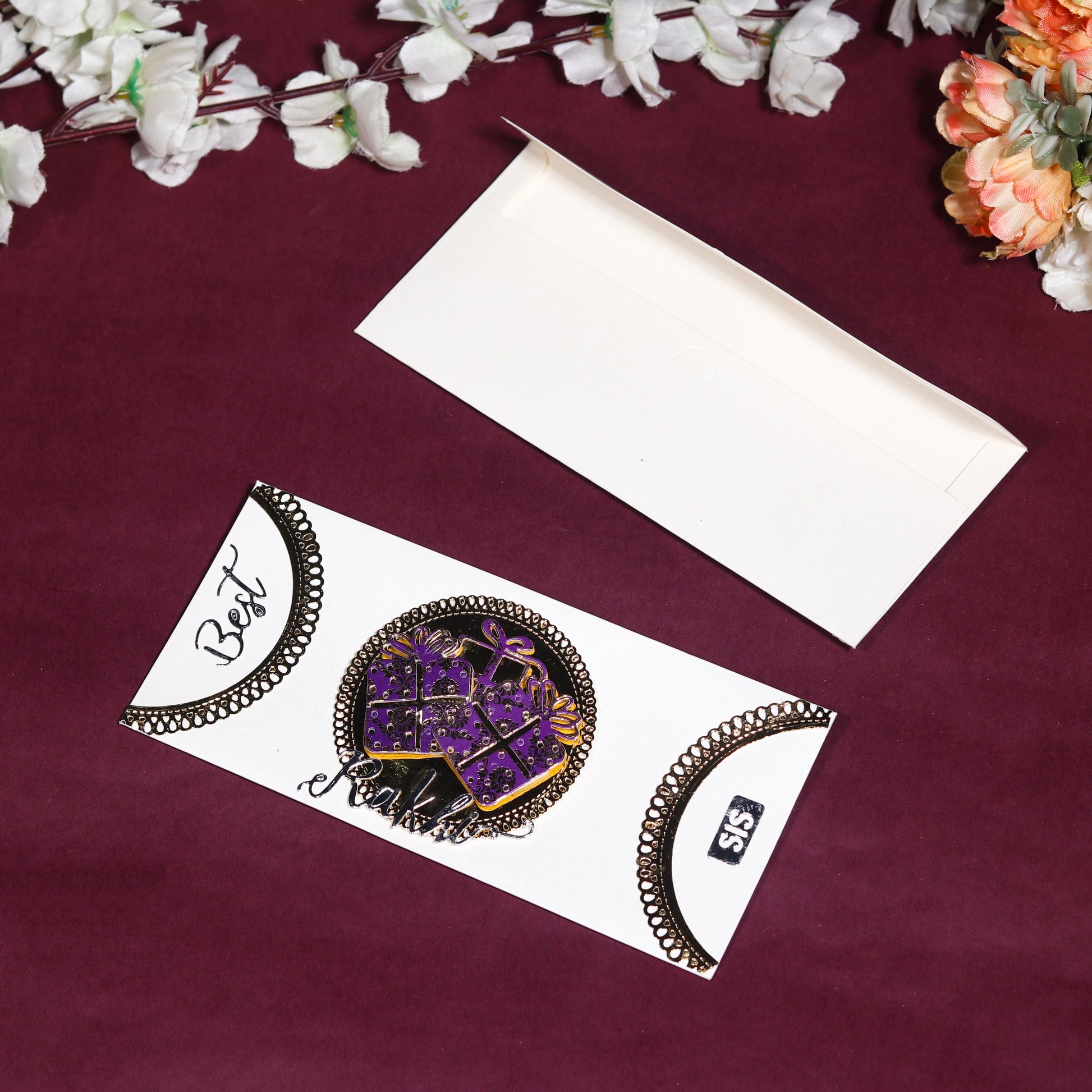 These envelopes are not just a medium for giving cash or Rakhi; they are a symbol of the love and care that brothers have for their sisters. The intricate design and royal touch make them a unique and thoughtful addition to your Raksha Bandhan celebrations.