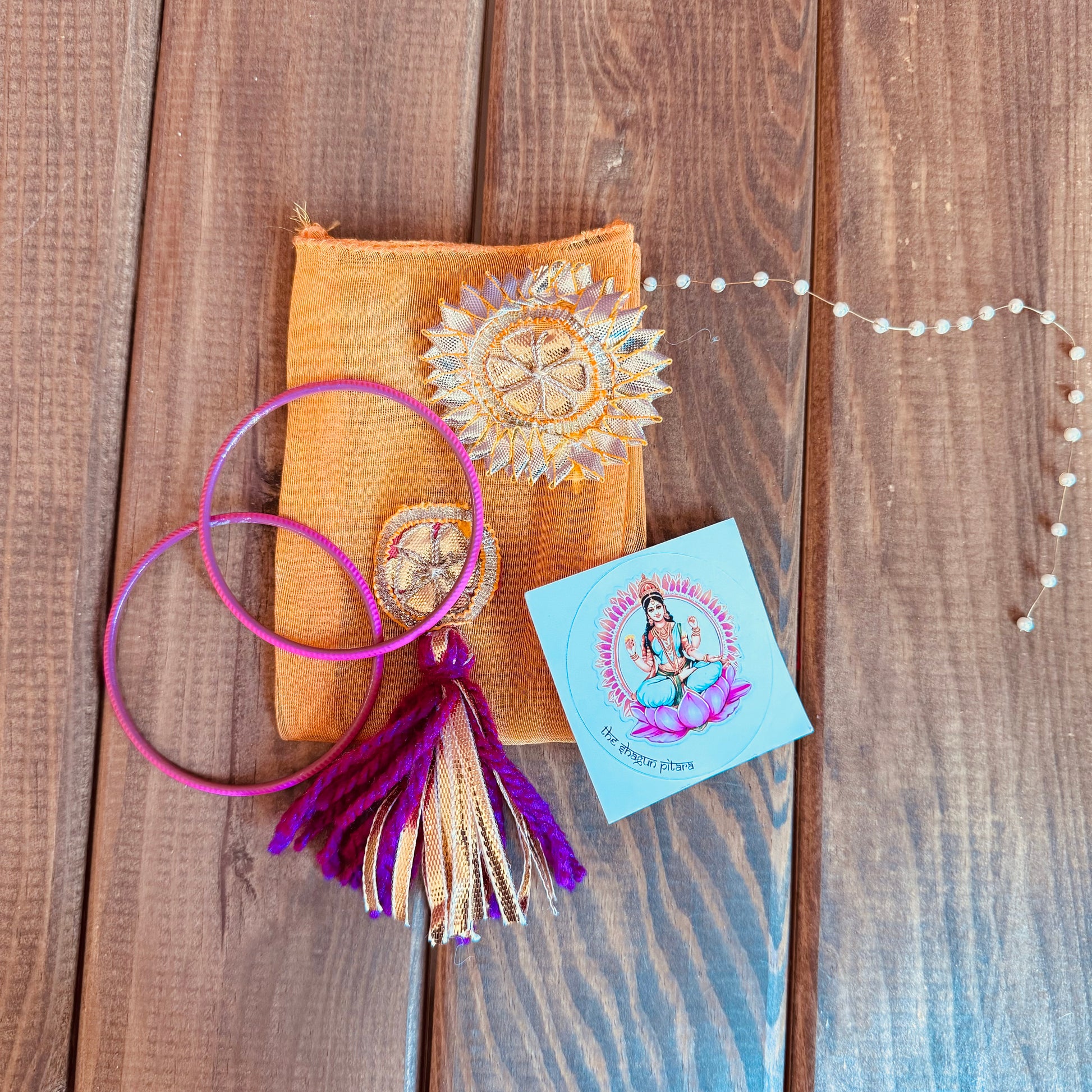 Introducing our Varalakshmi Favors, a perfect blend of tradition and elegance to make your festivities truly special. Each favor is thoughtfully curated to bring joy and blessings with the following inclusions: